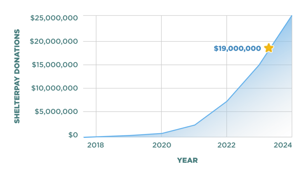 Over the next six years, we kept dreaming up new ways to raise more money for you, which paid off exponentially. Today, the Shelterpay suite of donation features is extensive: