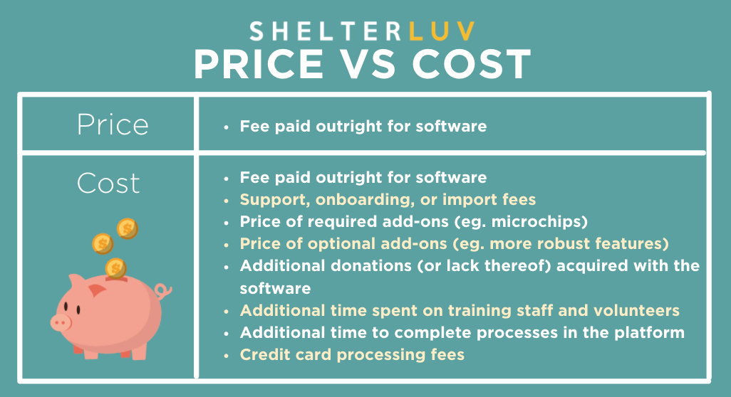 | Shelterluv: No, Shelterluv’s pricing is all-inclusive. Here is the full list of everything that’s included with Shelterluv. |